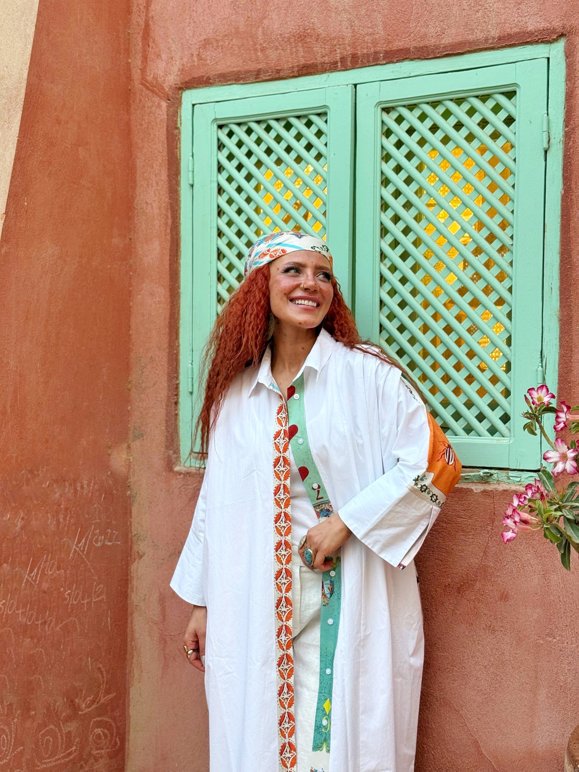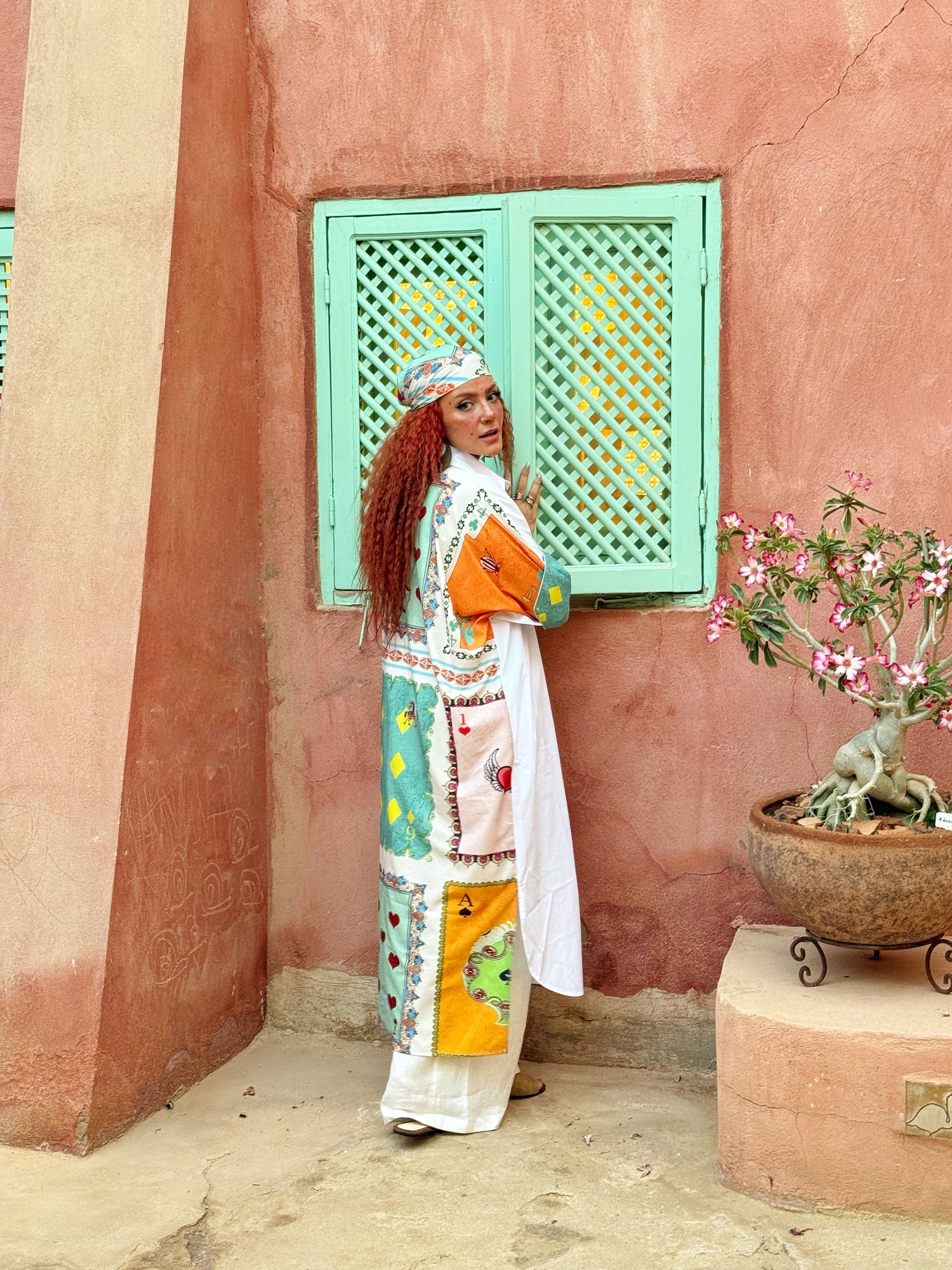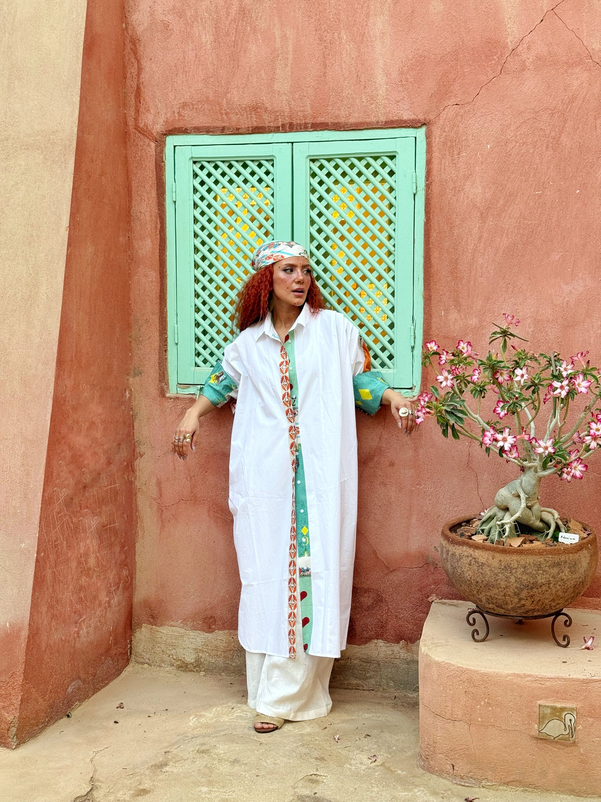 Crafted from soft, breathable poplin cotton, and finished with handpicked trims and vibrant patchwork, it’s a statement piece that feels like summer — joyful, artsy, and effortlessly cool.