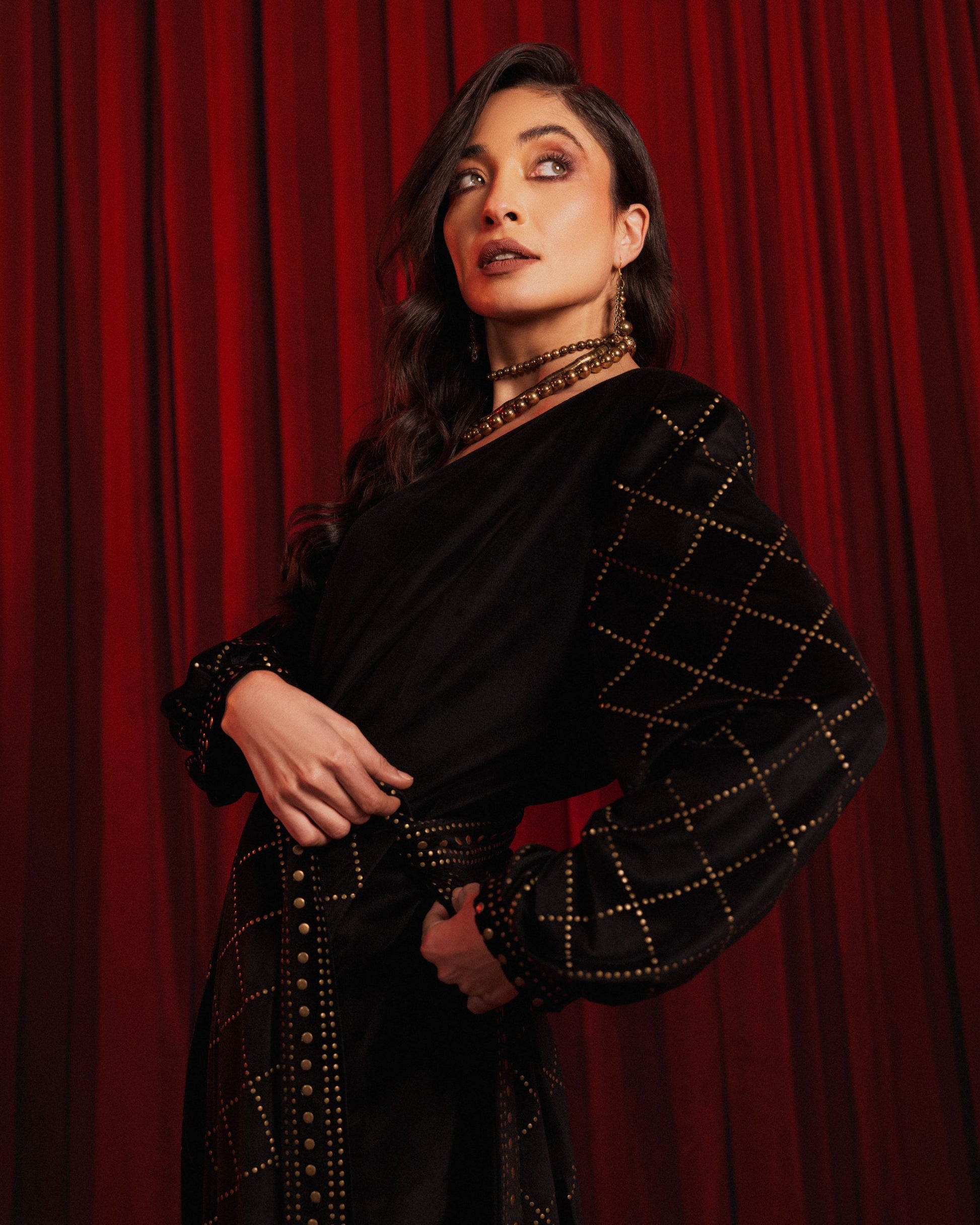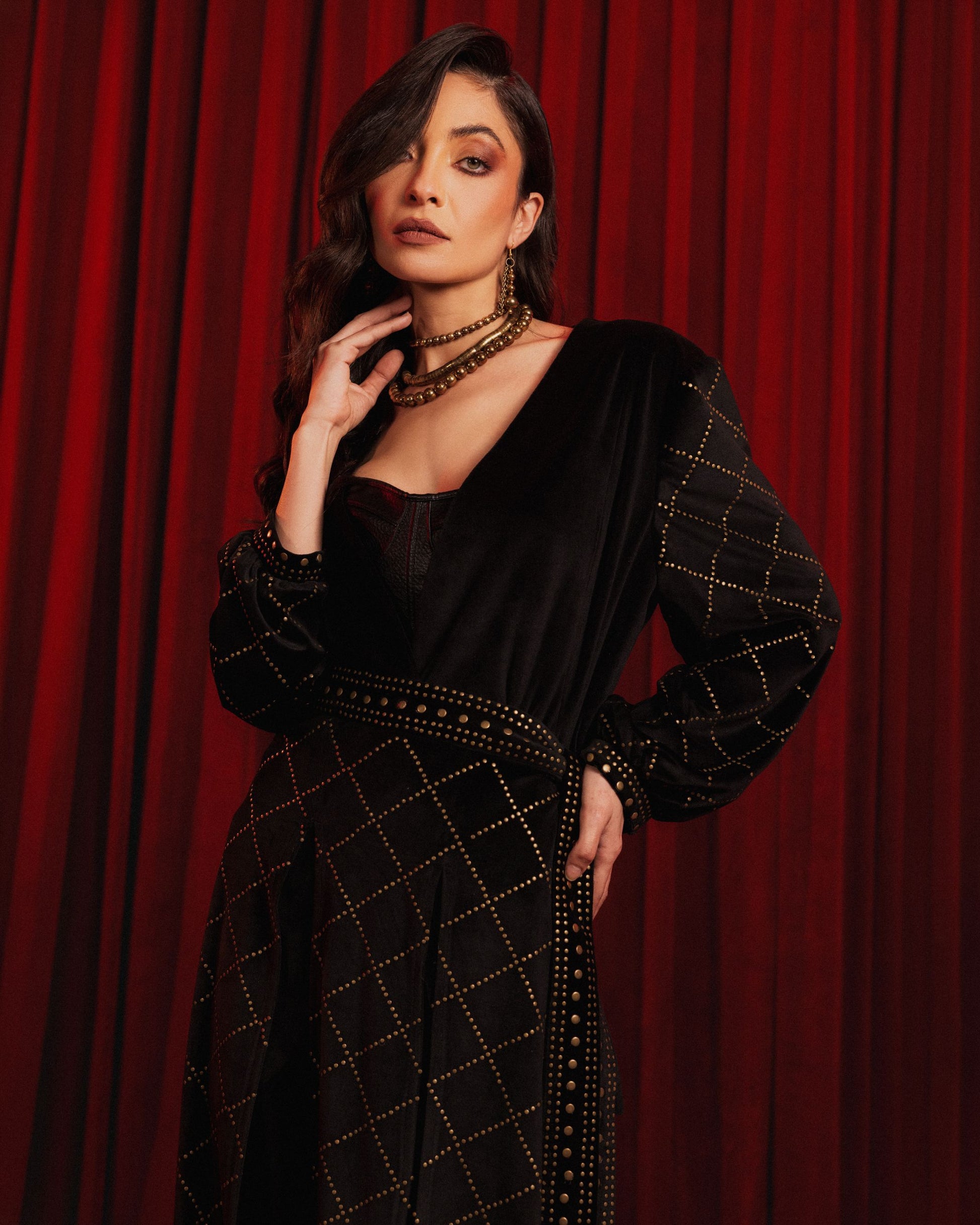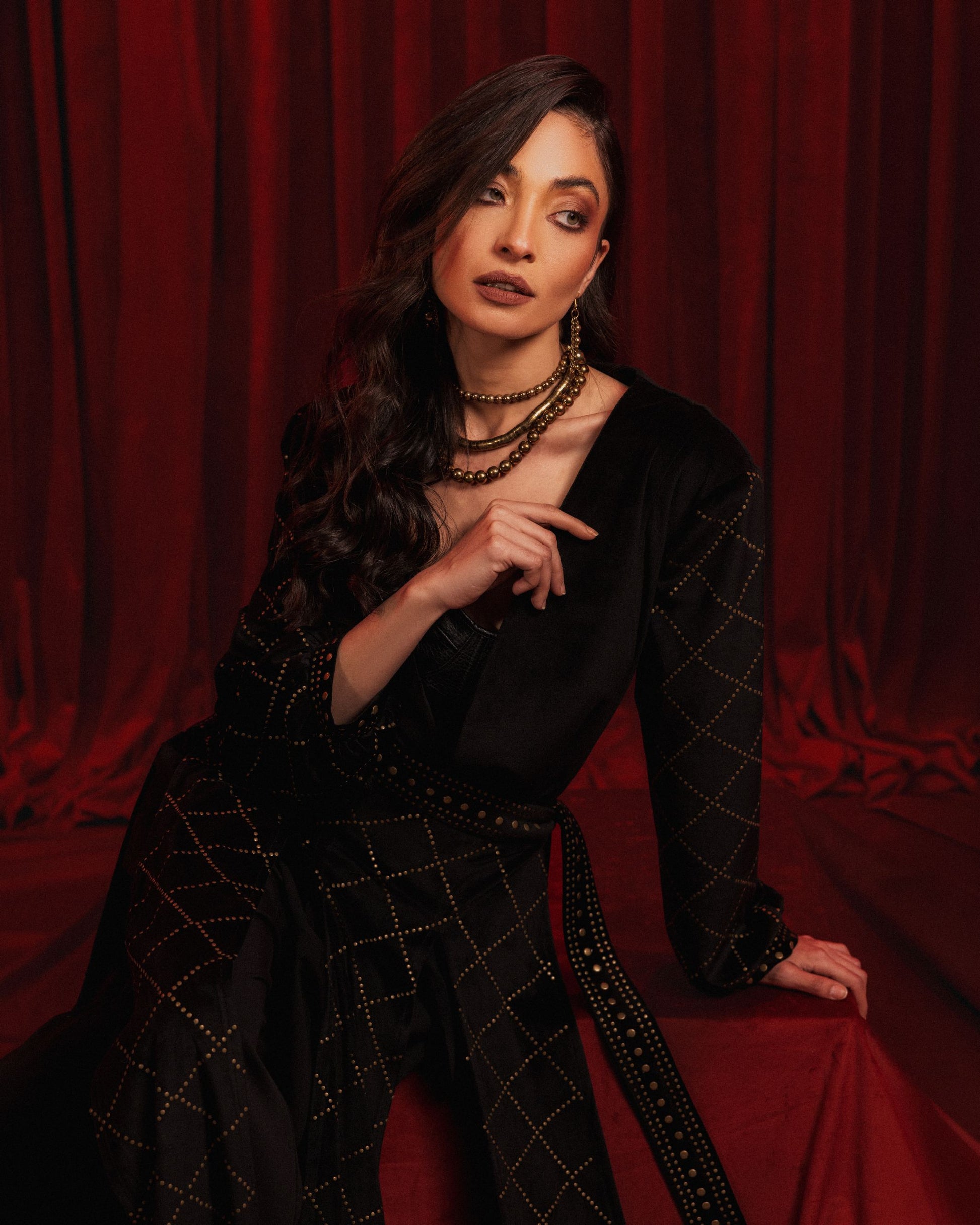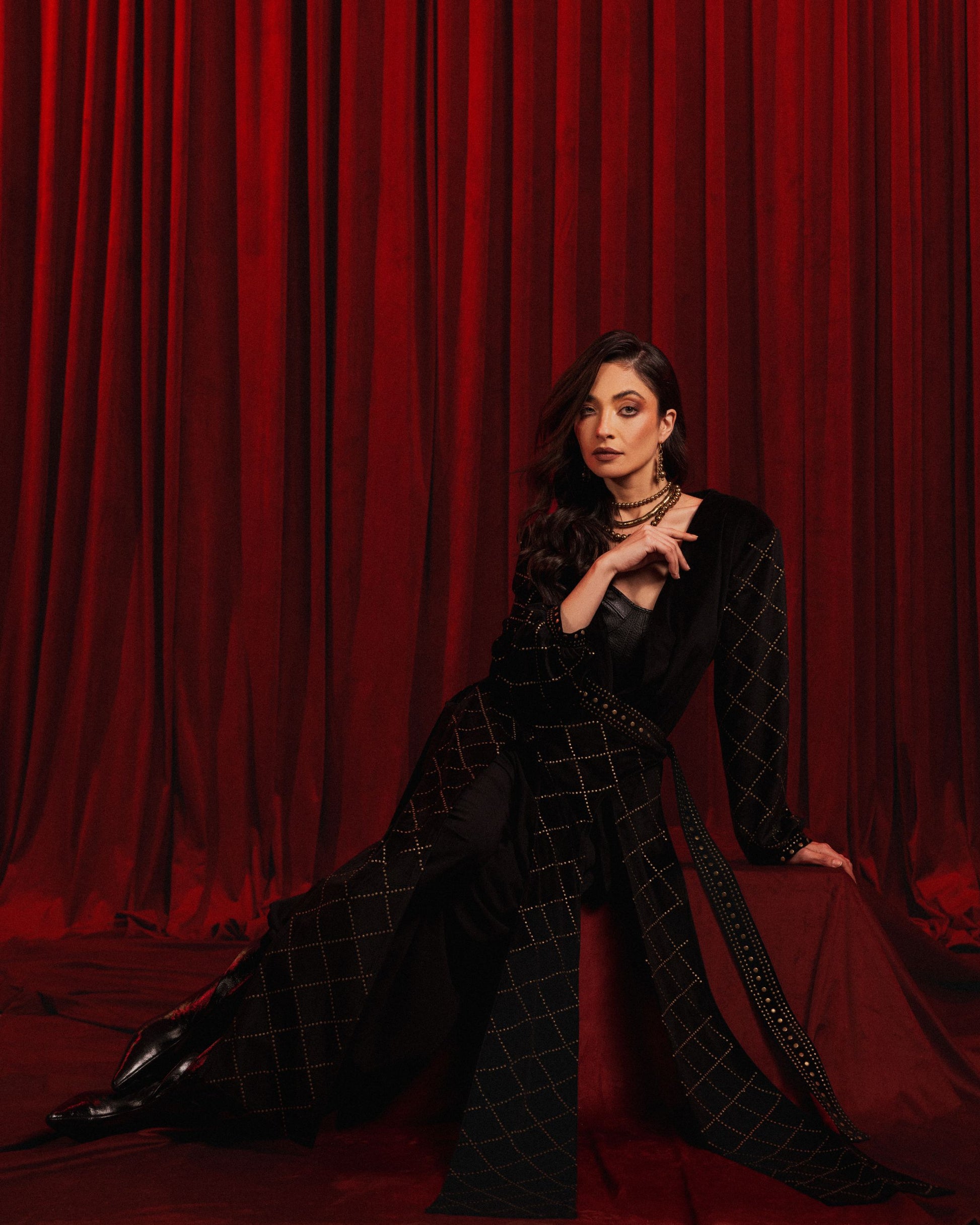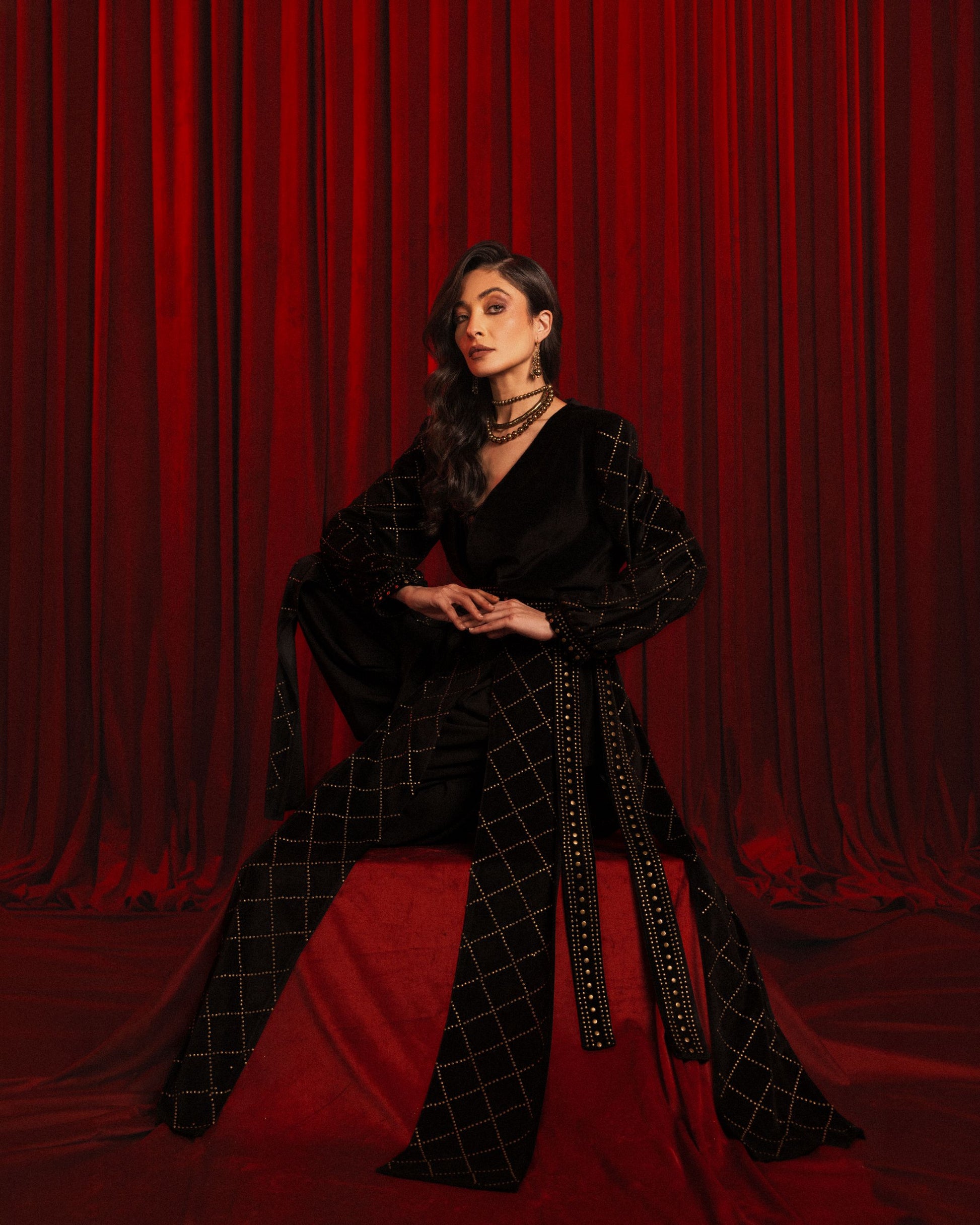 Designed to move effortlessly with the body, this piece blends structure and fluidity, creating a bold yet elegant look ideal for evening wear and Ramadan occasions.